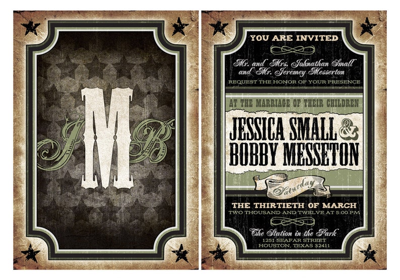 Vintage Western Wedding Invitation Set. Vaudeville wedding from img0.etsystatic.com Shop for your perfect western wedding invitations at invitationconsultants.com. 50 elegant floral geometric elegant frame invitation burgundy marsala gold (large size 5x7) weddings, bridal or baby shower invite, birthday invitation, any occasion (5x7 large). We've built a lovely pile of these for your consideration and personalization. The best place to get cheap wedding invitations would be from a large retail store such as walmart or target, but it is also possible to get them from amazon. For more information please call or whatsapp me on 0611416622 follow us on instagram @ naasiracollection. This cheap western wedding invitations photo is about wedding invitations uploaded by admin. Great savings & free delivery / collection on many items. Check out our western wedding invitations selection for the very best in unique or custom, handmade pieces from our invitations shops.